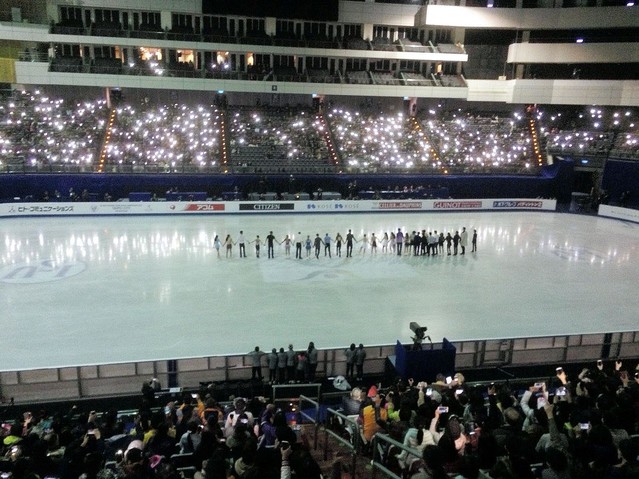 大トリだった男子シングル優勝の金博洋(中国)は結局エキシビションナンバーを披露できず。しかし氷上に姿を見せると、多くのファンがスマートフォンの懐中電灯機能で明かりをリンクへ向け、幻想的な“手作りリンク”が完成。その中で出演選手によるフィナーレも行われ、会場はハプニングに負けない温かな雰囲気に包まれた。