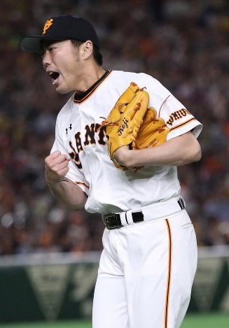 その裏に勝ち越し、八回は日本で10季ぶりの登板となった上原。大山をスプリットで3球三振に仕留めるなど3人を11球で片付けると、右拳を握ってほえた。ベンチでも、荒々しくハイタッチを交わして盛り上げる。直後に岡本が3ラン。勝利は決定的となった。